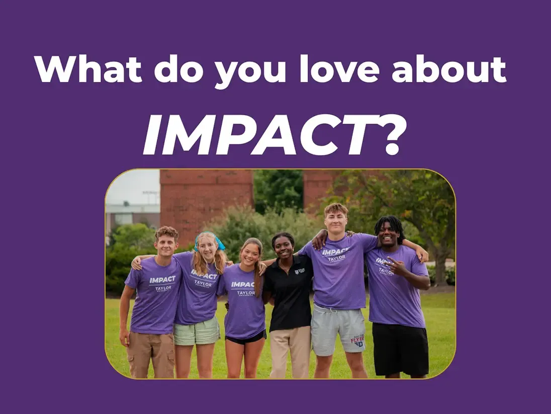 Welcome to IMPACT, a week-long residential camp hosted by Taylor University, specifically designed for current high school sophomores and juniors who aspire to be change-makers. At IMPACT, you'll transform your innovative ideas into reality, equipping you with the skills and mindset to make a difference in the world.