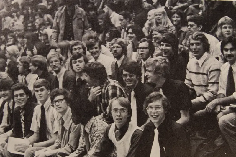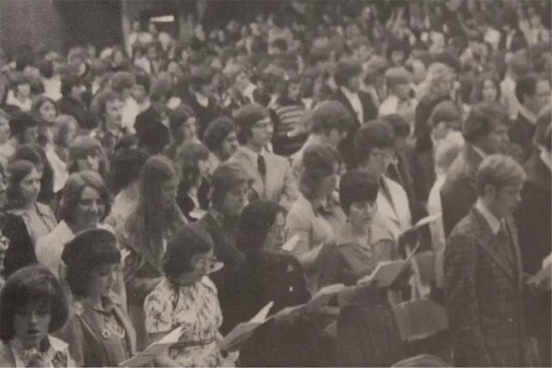 "We always got a printed schedule in our mailboxes at the dorm each Friday telling us about the daily activities for the next week. We were especially interested in the list of speakers for the chapel services which were always well attended and very meaningful. They were so important because of the spiritual food that was given to the student body three times a week (Monday, Wednesday, and Friday). We were blessed to have many outstanding speakers such as Coach George Glass, Coach Bob Davenport, Coach John Wooden, basketball legend Jerry Lucas, a concert by Bill Gaither, and many others!"
