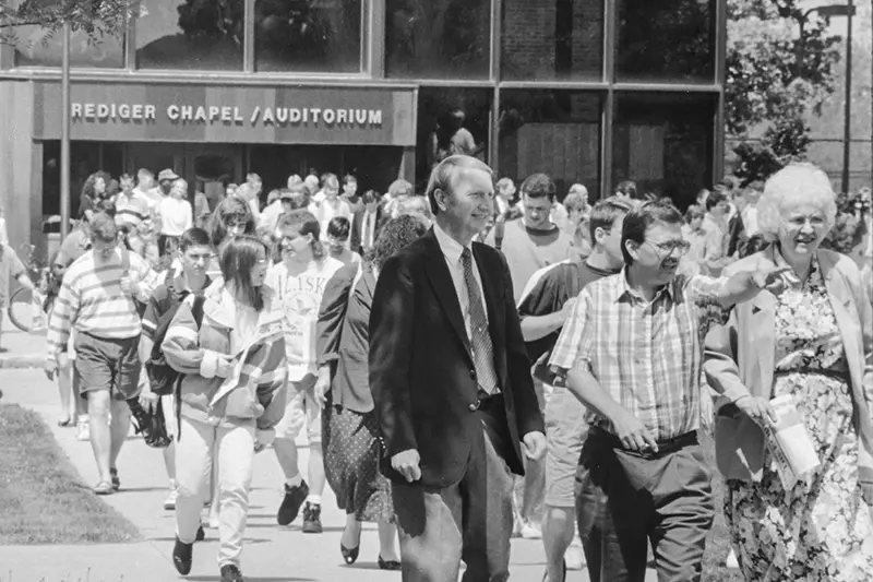 "President Milo Rediger used to refer to us as 'Chosen Ones.' He would make the point that by Providence we were chosen to be in community at Taylor preparing for service in His Kingdom, and the point stuck with me. I feel fortunate to this day to have been a chosen one."
