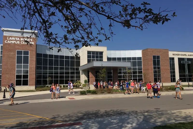 "The LaRita Boren Campus Center was constructed to wrap around the existing Rediger Chapel/Auditorium. Rediger was also renovated during the construction process."